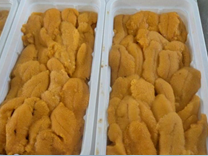 Frozen sea urchin packed in trays(tipped over)