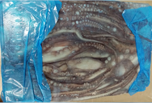Frozen Octopus of the south of Chile packed in blocks